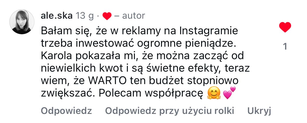 Ekspertka kampanii reklamowych na Facebooku i Instagramie z 9 letnim doświadczeniem w obsłudze reklam.